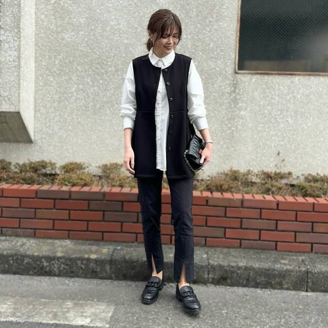 ベストの色や素材感で、全体のイメージがガラリと変わるのもポイント。白シャツがどんなテイストにも合う分、羽織り次第でさまざまなテイストを楽しむことができますよ。