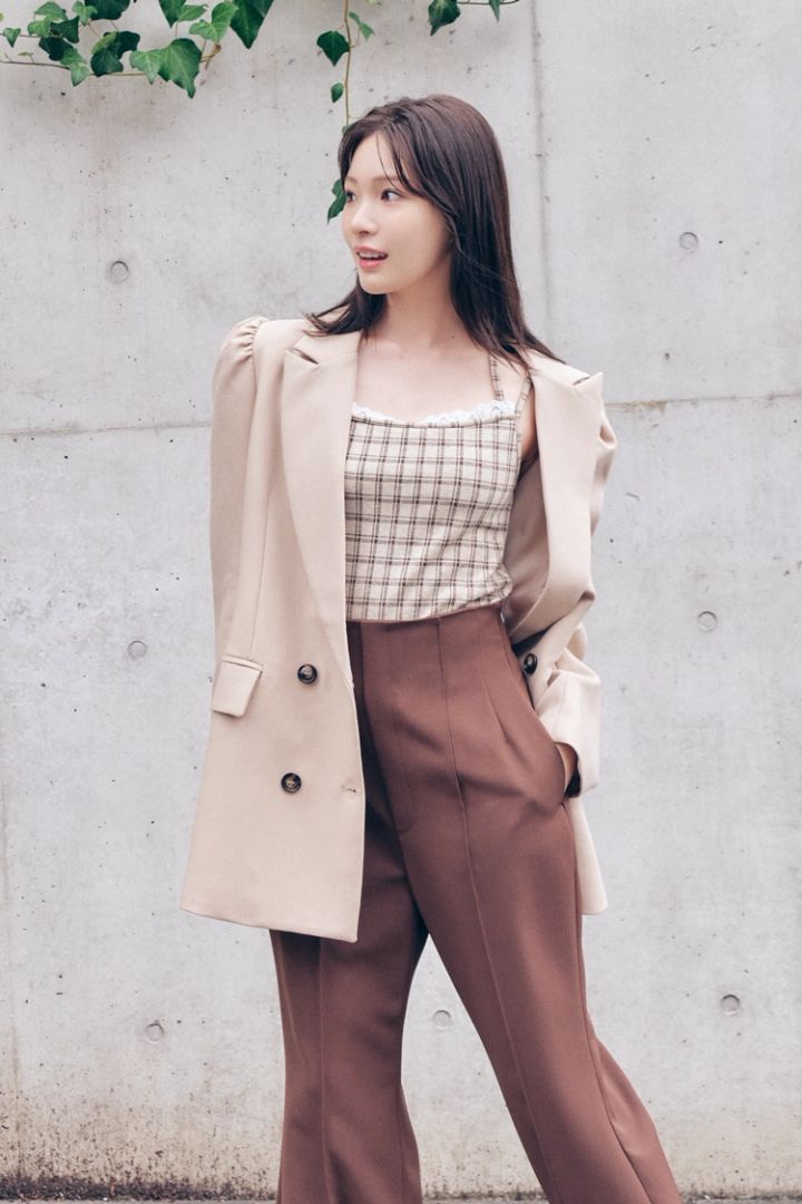 秋冬のムードが高まるブラウンコーデ。メンズが好きだと口をそろえたジャケットは、パフスリーブでしゃれみバクハツ。少し肩を落として、肌見せせよ♡