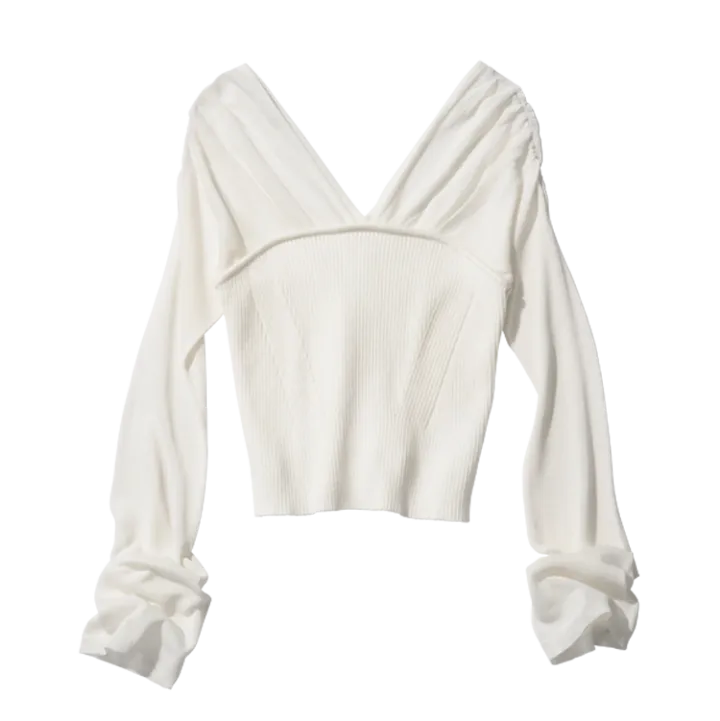 真っ白なトップスなら顔まわりを明るく、華やかに見せてくれる。