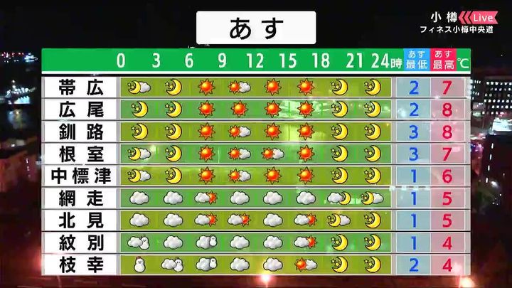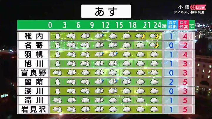 小樽はあす14日(金)のお出かけは厚手の上着と手袋が欠かせませんね。