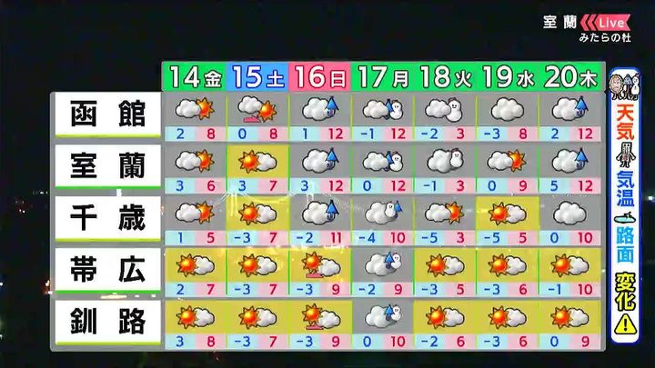 北海道のあす14日(金)の天気と、週間予報を、HBCウェザーセンターの児玉晃(こだま・あきら)気象予報士がお伝えします。