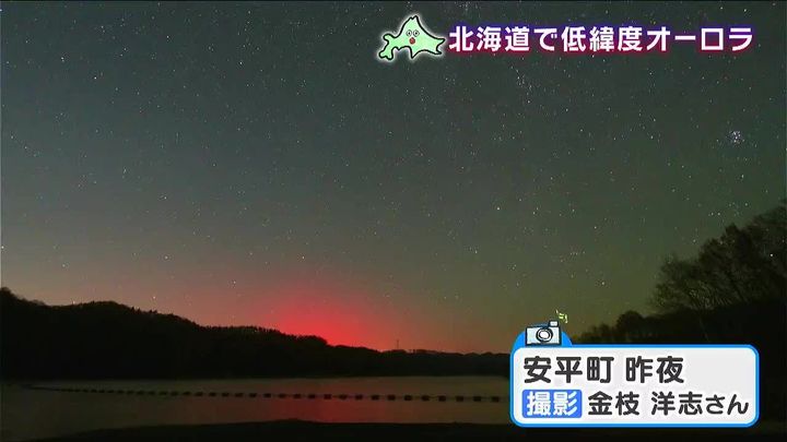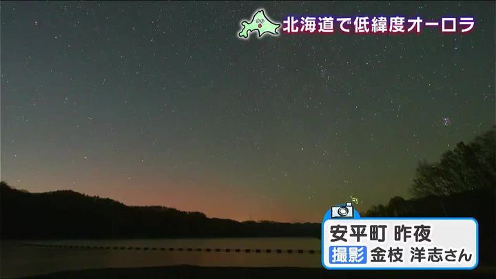 太陽の表面で大規模な爆発が起きたため、普段は北極圏で見られるオーロラが、緯度の低い北海道でも撮影できました。札幌市青少年科学館の方に問い合わせたところ、次はいつ見られるか分からないとのことでした。