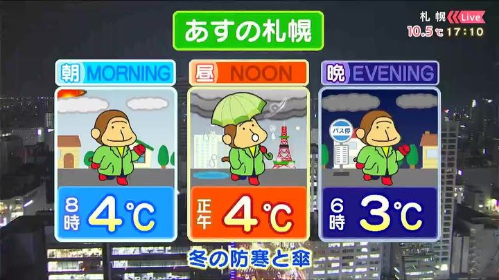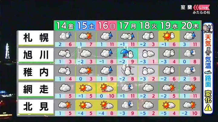 あす14日(金)の札幌です!朝昼晩の天気をもんすけでお伝えします!