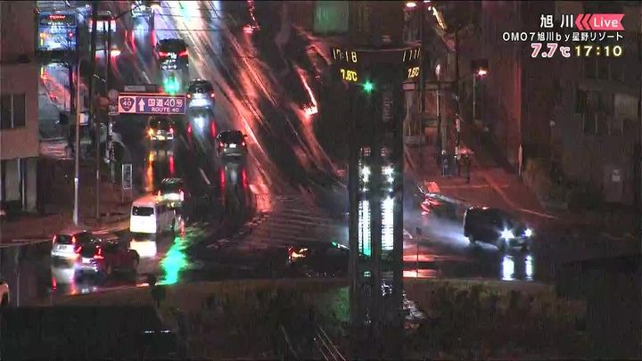 日中は雨が降って、旭川周辺でも雷を観測しました。今夜は急速に気温が下がり、あす14日(金)は雪が降ります。路面凍結にも注意して下さい。