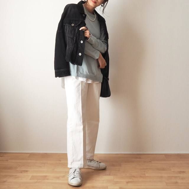 意外にも秋冬のカジュアルコーデにハマるのが「パールのネックレス」。つややかな光沢のあるネックレスがスウェットやざっくりニットに引き立ち、大人っぽいルックスに。