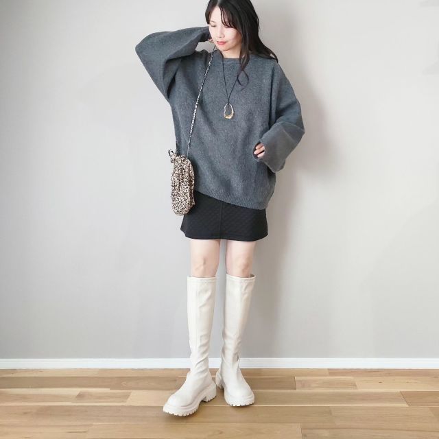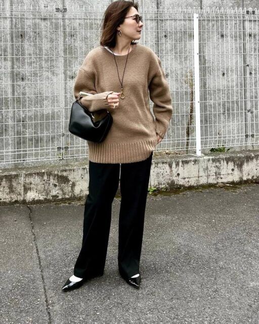 秋冬のゆるっとしたニットにぴったりなのが「大ぶりモチーフのロングネックレス」。存在感たっぷりなネックレスのおかげでオーバーサイズのニットものっぺり見えず、コーデのシャレ感を底上げ。カジュアルながらサマになりますよ。