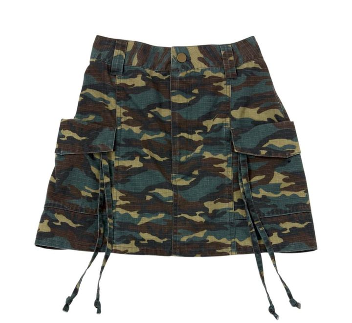 【上から】ユーズドライクな色合いがナイス。Tシャツ¥2,474、ミリタリーなムードでコーデを刷新して。ミニスカート¥3,299、スタイリングのアクセントになるライトブルー。キャップ¥1,649、シャツ合わせでクールに。ネクタイ¥1,099、プラスするだけで今っぽくなるカラーレンズ。ガーリーなピンクがイチオシです。サングラス¥990/以上すべてウィゴー