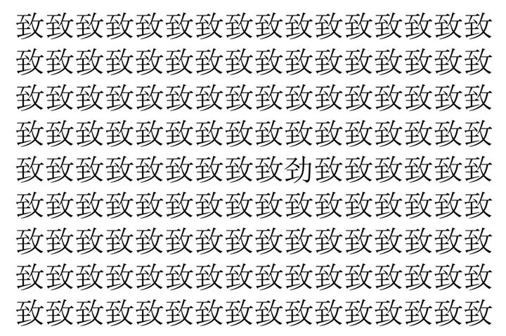 画像の中には、「致」という漢字が縦に9行、横に16個並んでいます。 全部で144個となりますが・・・、そのうち1つは「異なる漢字」となってますよ!!