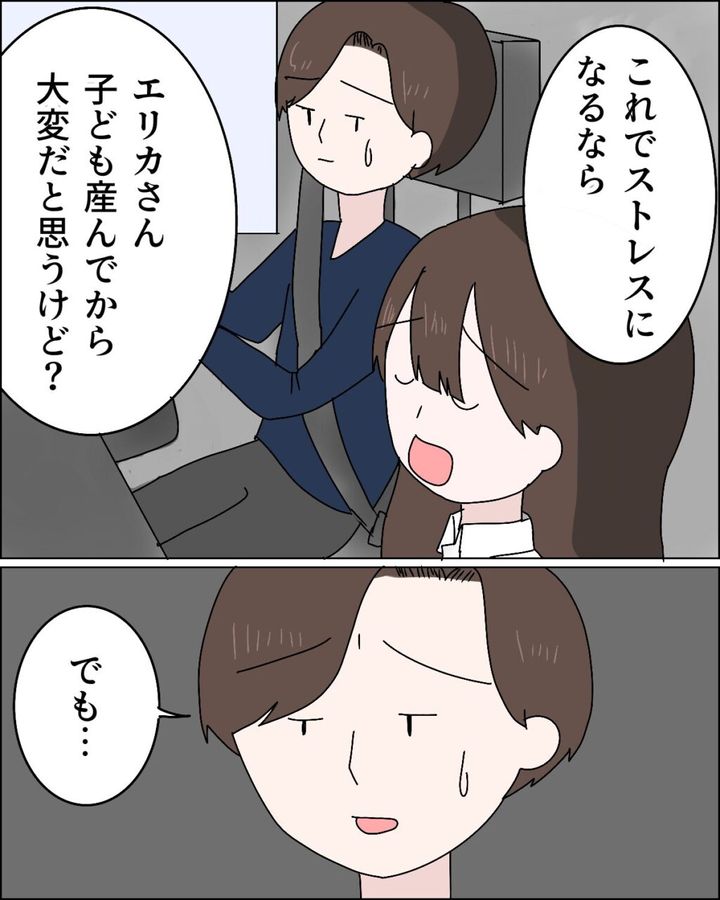 さらに、「これでストレスになるなら、エリカさん子ども産んでから大変だと思うけど?」と言われ、「でも・・」と夫は何も言えなくなってしまいました。