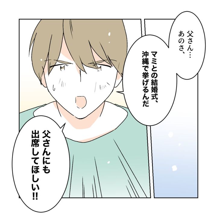 すると、突然ショウタが「父さん、あのさ・・・」と意を決したように口を開き、「マミとの結婚式、沖縄で挙げるんだ、父さんにも出席してほしい!」と言いました。