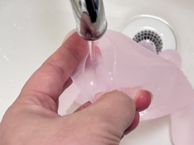 中厚手の掃除用手袋くらいの厚みなので、何も入れていない状態でもぺたんこにならず、膨らみがあるため使用後に洗いやすいです。
