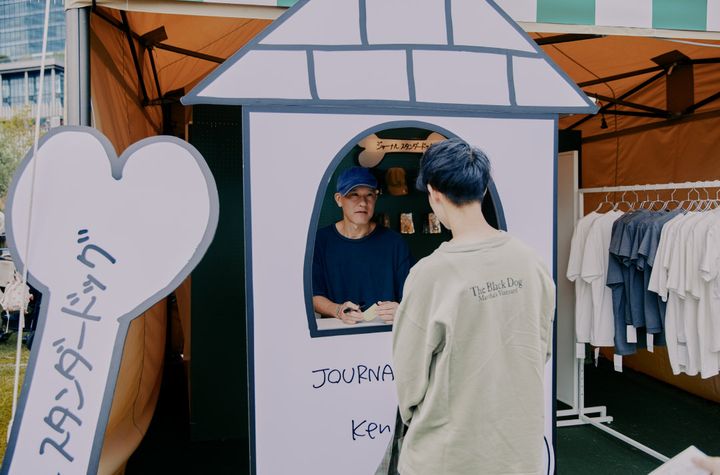現代美術作家・加賀美健氏と“犬”をテーマに、フェス限定アイテムを制作。お買い物をした方に、ご本人が即興で描く「一言ステッカー」のプレゼントもあり、連日大盛況!