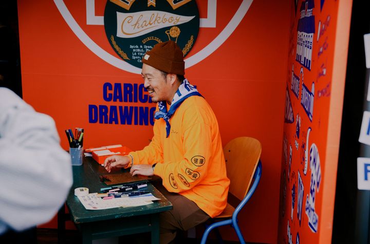 チョークアートを通して手描きの魅力を発信する人気アーティスト〈CHALKBOY〉による「1分間タイムアタック似顔絵」も。