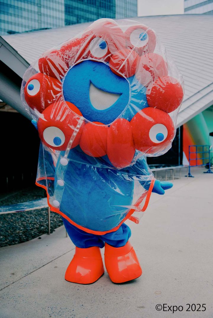 大阪・関西万博公式キャラクター『ミャクミャク』も来店! レインコート姿のレアな『ミャクミャク』にみんな釘付け♡