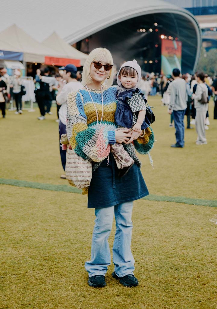 Instagram:@kanako_0406「ママは『Marques Almeida』のイエローニットが映えるようにカラーバランスを意識してスタイリング。息子は『Semon ApartMent』のジャンプスーツを腰巻きスタイルで。ママのファー小物と息子のハットの柄でさりげなくアニマルリンクしたところもポイントです。フェスには、おしゃれなパパやママもたくさんいて、もっともっと子育てもファッションも楽しめるママでいたいな、と思いました!」