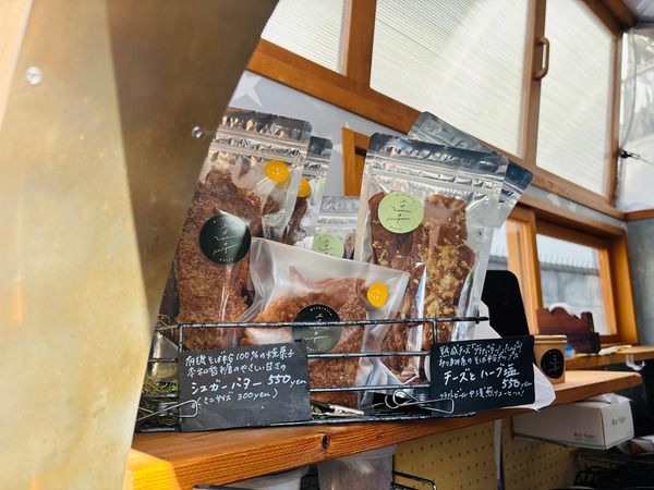 お惣菜ガレットと甘いクレープの他に、そば粉ガレットの焼き菓子やこだわりの食材で作ったドリンクも販売しています。