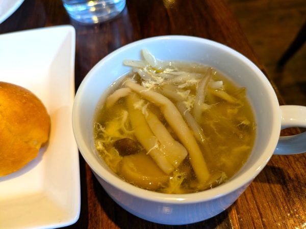 本日のスープは、きのこと野菜のスープです。健康的でいいですね~。セルフサービスなので具材を多めにいただきます。(笑)