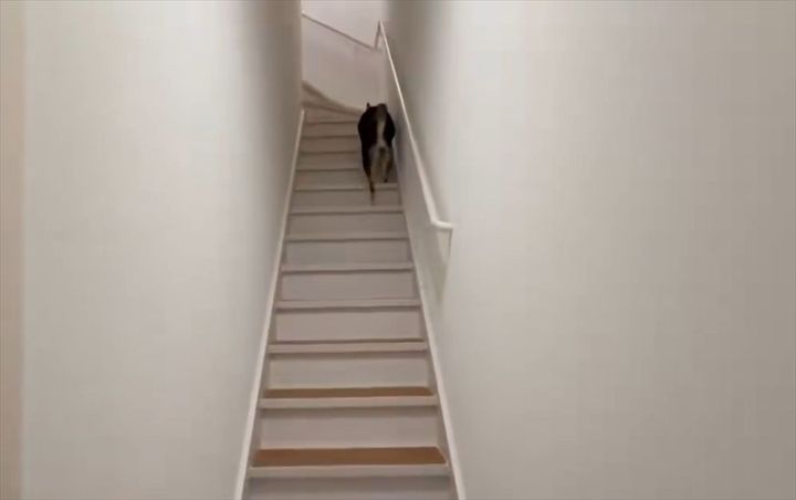 ななちゃんはそそくさと階段を上って帰っていってしまいました。 飼い主さんによると、「ほんと早いんですよ。この日だけじゃなく、いつもなんですわ」とのこと。