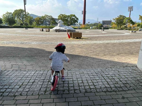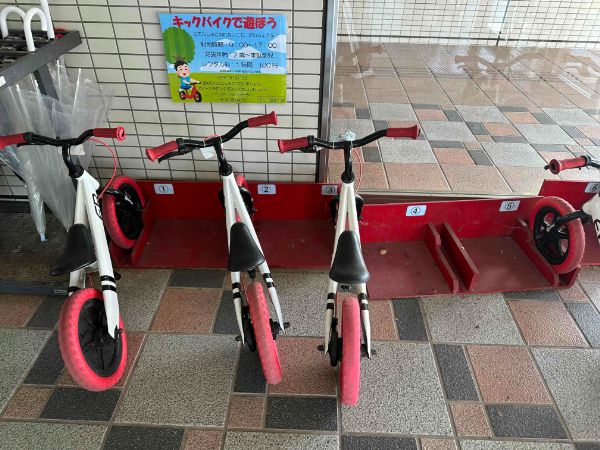 アリーナ前では キックバイクのレンタル もありました。対象は2歳以上の未就学児で、料金は1時間100円。