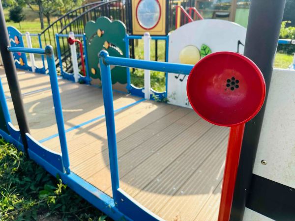 園内には伝声管遊具があり、離れた場所にいるお友達や家族とおしゃべりができるんです!子どもたちは「聞こえたー!」「もう一回話してー!」と大喜び。