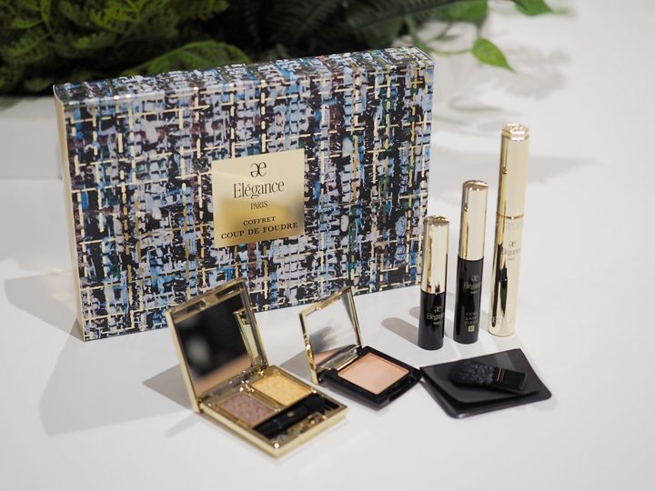 エレガンス コフレ クードゥフードル 8,250円(11月1日発売) ★ <セット内容> ・アルモニーアイズ 126 ・グラヴィティレス マスカラ BR22 ・カールラッシュ フィクサー(ミニサイズ) ・クラルテ ルージュ ビジュー 102(ミニサイズ) ・カランドゥ フェイス BE402(ミニサイズ)※フェイスブラシ(専用ケース付き)