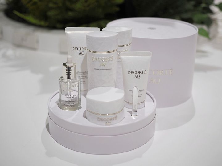 にしきおり:コスメデコルテではスキンケアのコフレも充実していて、「AQ ラディアンス コフレ Ⅱ」はAQシリーズの魅力を存分にお試しできるセットになっています。クレンジングに洗顔、導入乳液、化粧水、ナイトクリームに加えて、今年話題になった「AQ 毛穴美容液オイル」も入っているなんて贅沢すぎますよね。