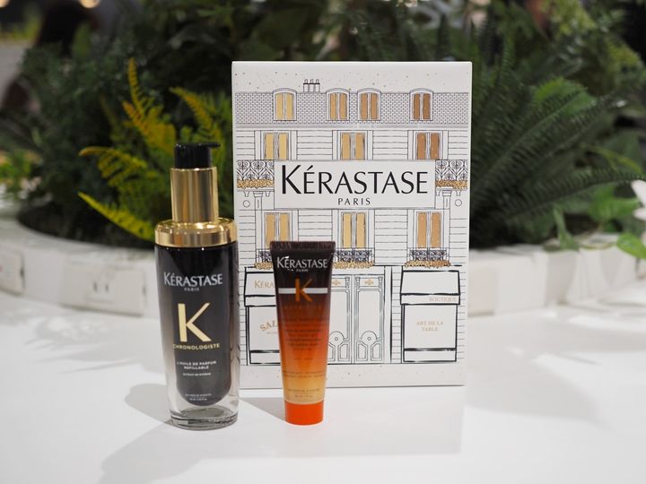 よしかわ:ケラスターゼから日本初のコフレが発売されました。「ケラスターゼ デイアンドナイトケア ホリデーコレクション」は、ケラスターゼ最高峰シリーズ「クロノロジスト」のヘアオイルの現品と夜用ヘア美容液のミニサイズがセットになって、朝も夜もケラスターゼで贅沢なケアをかなえます。「ユイル クロノロジスト N」はフローラルシプレーの香り、「マジック ナイト セラム R」はナイトタイムに変化するオリジナルのブレンドの香りと極上のヘアケアタイムを提供してくれますよ。