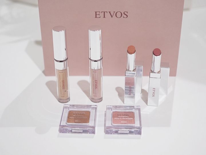 よしかわ:今回のETVOSは儚さはありつつも凛としたカラーになっていますよね。数量限定で発売されていた「ミネラルインナートリートメントベース マカロンピンク」のミニサイズとシルバーと偏光ゴールドの繊細なパール入りのふんわりまとえる「ミネラルルーセントパウダー スノーパール」の組み合わせも、血色感のあるやわらかな肌に見せてくれそう。