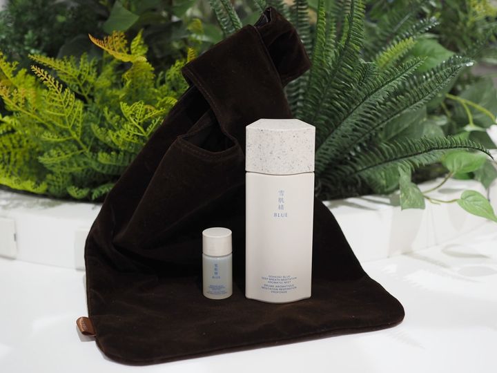 にしきおり:雪肌精 BLUEからは、12月1日にライフスタイルアイテムがデビューするのですが、同日からホリデーシーズン限定のスペシャルキットも登場するんです。「雪肌精 BLUE ディープブレス メディテーション アロマ ミスト リミテッドキット」は、「雪肌精 BLUE ディープブレス メディテーション アロマ ミスト」の現品と「雪肌精 BLUE ファーミング アロマ ボディ オイル」のミニサイズとオリジナルバッグがセットになっていて、よしかわさんと香りを一緒に試したのですが癒されますよね。