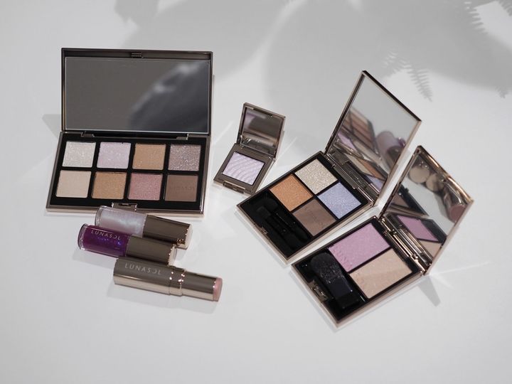 にしきおり:ルナソルは「Prismatic Labyrinth」をテーマに、やわらかな色彩と輝きが交差する、ロマンティックなメイクアップアイテムが勢揃い! この秋冬は青みカラーに挑戦しているので、青み×パールを含んだ今回のコレクションは私好みのラインアップでした。特に「モノアイカラーレーション EX13 Innocent Breath」は、ラベンダーのベースカラーにブルーやグリーンのパールが含まれていて透明感のある神秘的な印象になれます。