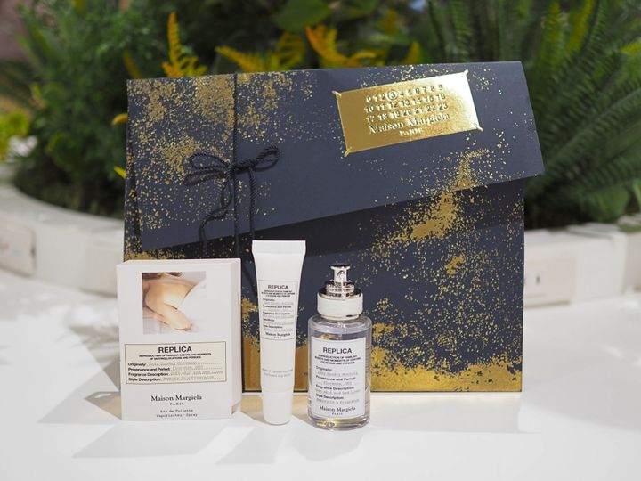 よしかわ:メゾン マルジェラの「レプリカ オードトワレ ウィンターホリデー ギフト セット」は、好みの香りの「レプリカ オードトワレ」と好みの香りの「レプリカ ハンドクリーム」もしくは同日発売の「レプリカ リップバーム レイジーサンデー モーニング」から選べるセット内容に加え、さらに大人気の「レプリカ オードトワレ レイジーサンデー モーニング サンプル」もついた贅沢なギフトセットになっています。自分好みの香りで選んでみたり、大切な人を想ったセットにしてみたりと選んでいる時もワクワクしそう。