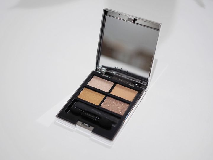よしかわ:Celvokeは、ベーシックカラーに雪の結晶のようにきらめくパールやラメを贅沢に詰め込んだ、かわいさと使いやすさを兼ね備えたアイテムが勢揃い。中でも買わずにはいられなかったのが「セルヴォーク ヴァティック アイパレット EX19 Ginger Bread」。ベージュやキャメル、ローズブラウンといったオフィスメイクにも使えるカラーにスパークルカラーの淡いピンクをトッピングすれば陰影もありつつ、透明感のある目元が完成します。