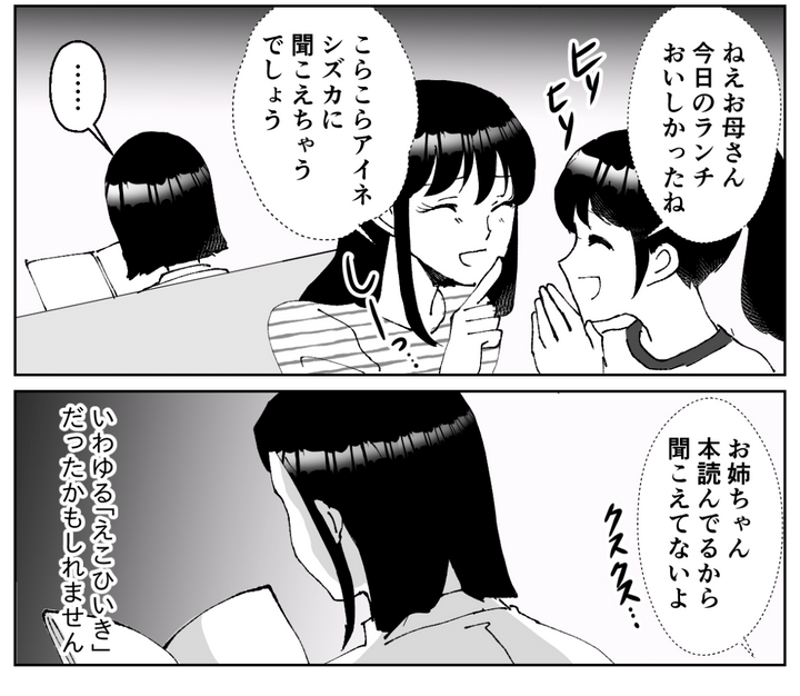 母が私を可愛がっているのは誰の目から見ても明らかでした。姉そっちのけで、2人だけで出かけることも少なくありませんでした。いわゆる「えこひいき」というものだったのかもしれません。私と母が2人で出かけた話をしているとき、姉は蚊帳の外でした。