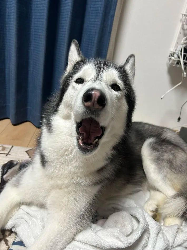 シベリアンハスキーはオオカミのようにワイルドな姿が特徴ですが、飼い主さんがラニちゃんを撮影したところ、思わぬ表情が写ったようです。