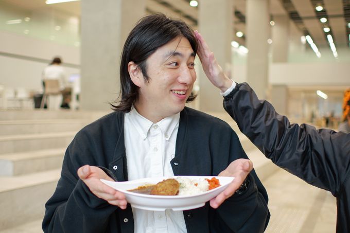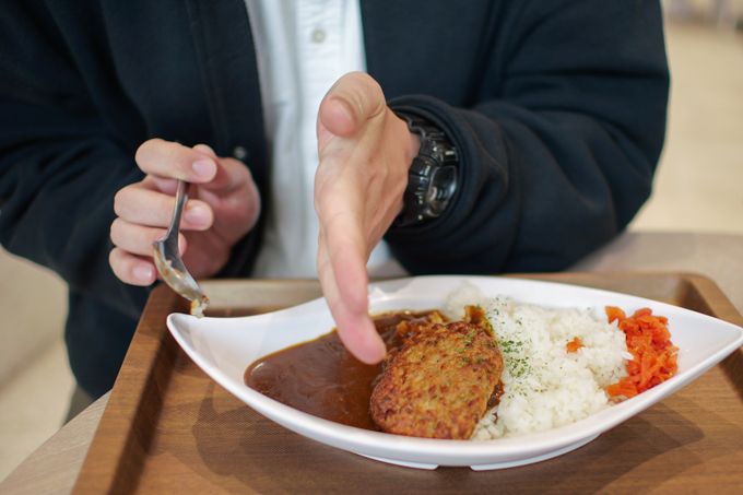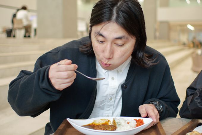寺内:めちゃくちゃ美味い! 優しい学食カレーじゃなくて、コクのある芳醇なビーフカレーです。ハンバーグもジューシーで美味しい! まさに、ハンバー「グー」!