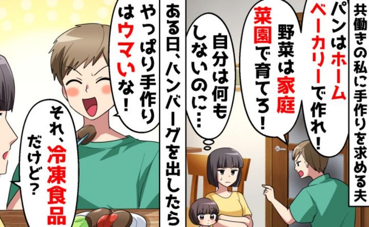 夫「女なら全部手作りしろよ!」エスカレートする手作り要求…冷食との違いもわからない残念な夫の末路