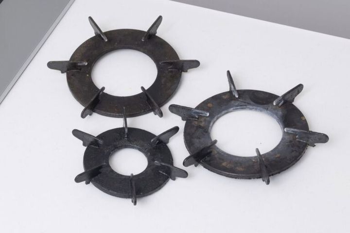 あちこちに汚れがついた状態でさらに過熱されていた五徳は、全体的にくすんで汚れていた状態でした。でも、つけ置きとこすり洗い後にはこびりついた汚れが取れて、輝きが戻っています!