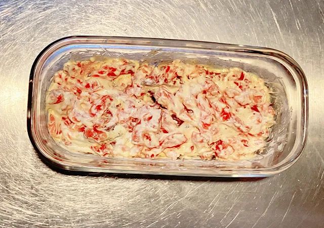 器にサーモン、溶かしたバター、マヨネーズ、塩コショウを加えて和えましょう。