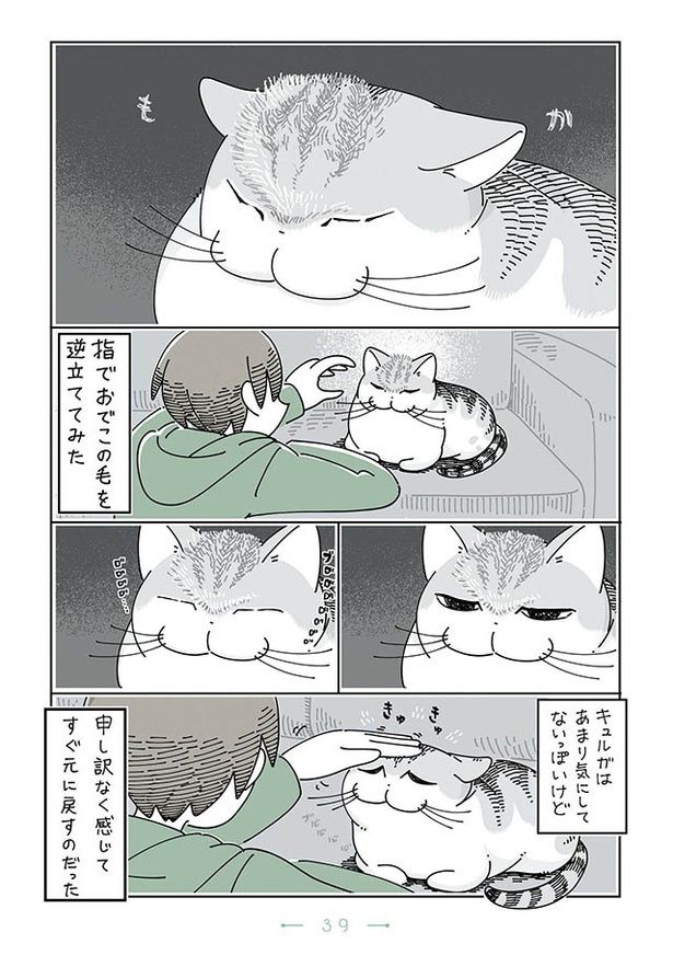頭をなでなでしながら毛を逆立ててみると…? つい猫のおでこの毛で遊んでしまう飼い主/夜は猫といっしょ3(37)