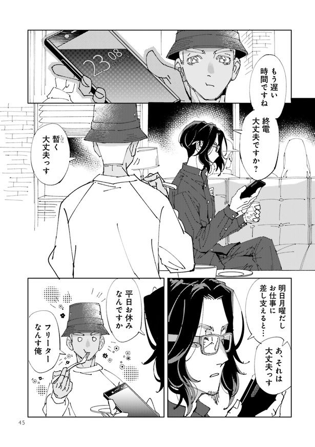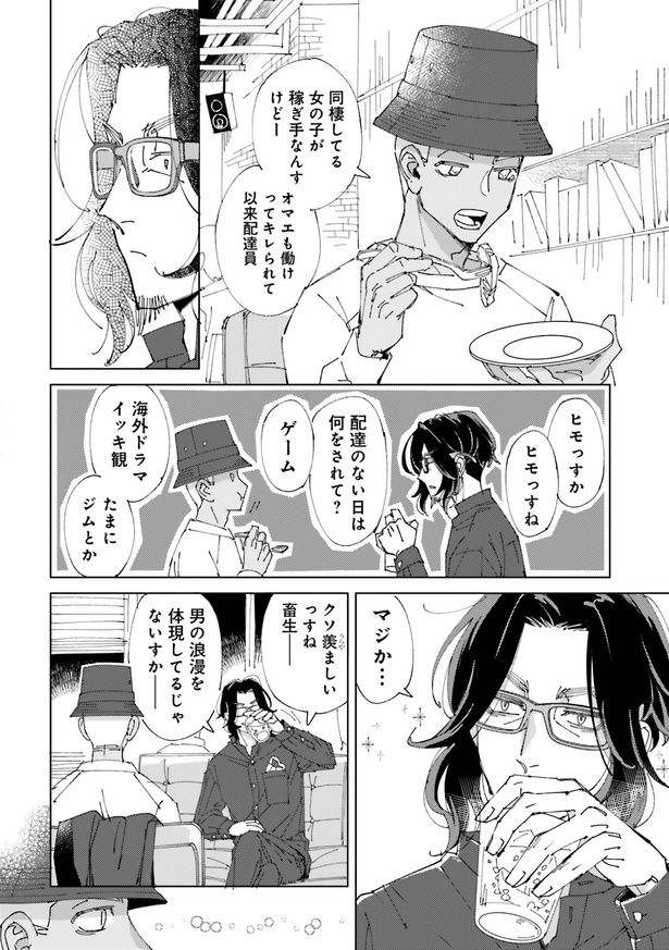 都内の映像制作会社で働く社畜陰キャなおじさん・宗方。休日出勤は当たり前、日々仕事に追われるなか、宗方の心のオアシスとなっているのは、会社にやってくるフードデリバリーのイケメン配達員・橘だ。顔面“SSR”な上、いつもきっちり時間厳守で配達してくれる橘に、宗方は密かな想いを寄せていた。今日も今日とて休日出勤に明け暮れる宗方だったが、配達のお礼として橘に映画の招待券をプレゼントしたことをきっかけに、2人の関係は少しずつ変化して――? 11月10日に第1巻が発売!『配達のお兄さんが気になる社畜のおじさんの話』をお楽しみください!