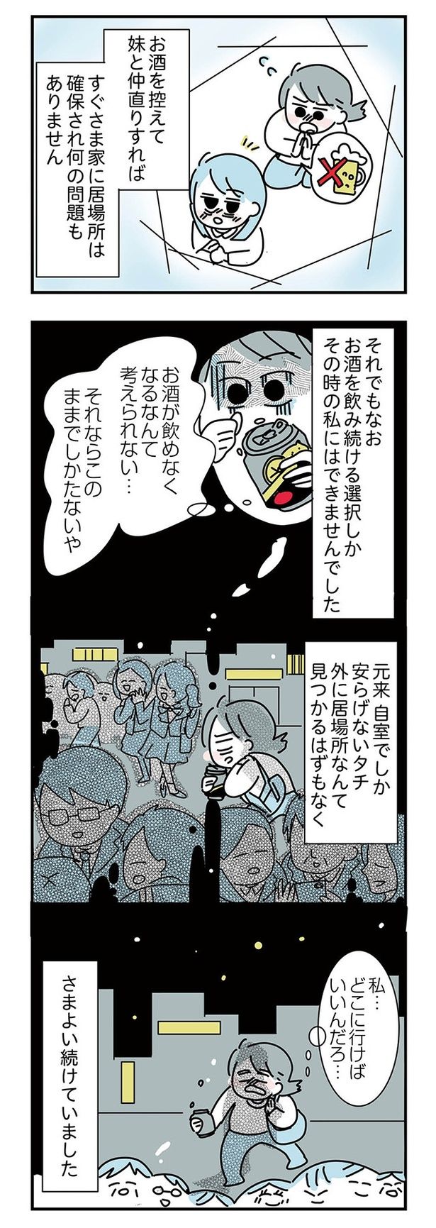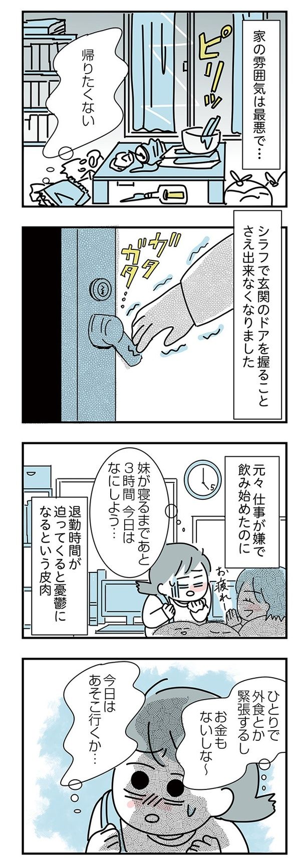 3. お酒が原因で妹との関係は最悪。飲まないと帰宅できない悪循環に陥る/人生が一度めちゃめちゃになったアルコール依存症OLの話⑲