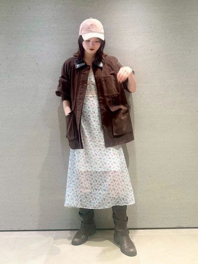 秋コーデ⑩オーバーサイズジャケット×クラシカルワンピース