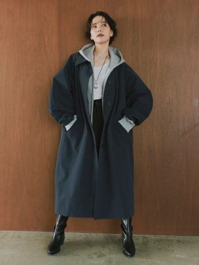 春はパッと華やかなカラーが映える季節。深めのグリーンカラーなら、存在感があるものの大人っぽくて派手見えしません。長めの丈感なので、ロングブーツでトレンドシルエットを作りましょう。