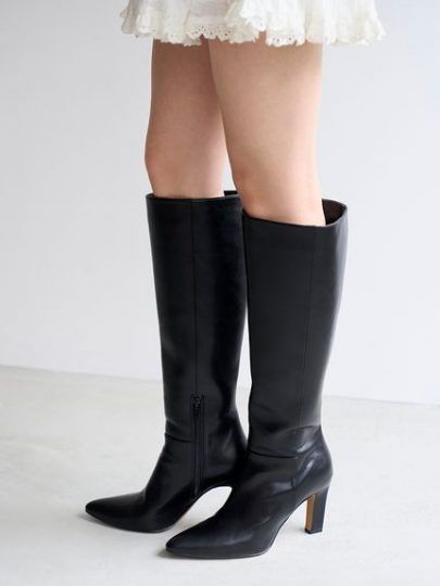 きれいめ派は足にほどよくフィットするロングブーツでスッキリとしたシルエットを作りましょう。約9cmのヒールでスタイルアップも間違いなしです。