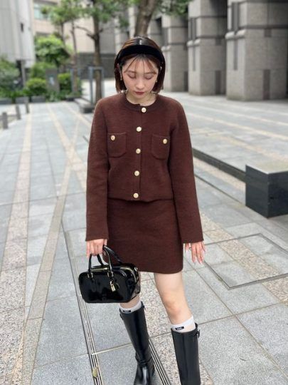 こっくりブラウンは、秋の大本命トレンドカラー。ジャケットのニットセットアップなら、クラシカルな雰囲気で今年らしく取り入れられます。