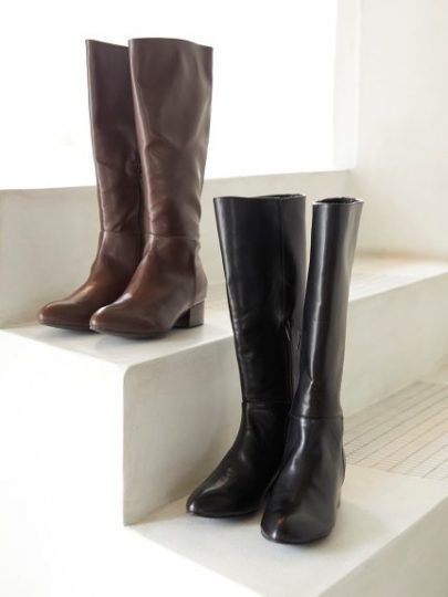 ベーシックなロングブーツは、1つあるとシーズンレスに使えて万能。ふくらはぎ幅が広めに取られているので、細長い華奢な脚に見せてくれます。