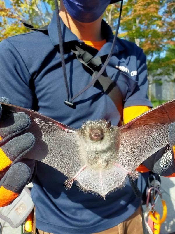 ※コウモリは歯や牙が鋭い上に菌を媒介することがあるので見かけてもむやみに触らないようにしてくださいね。手袋は必須です。