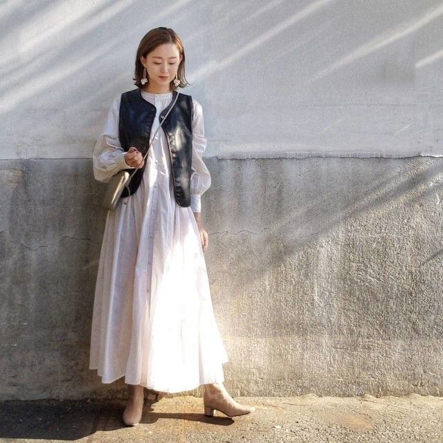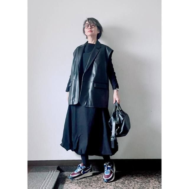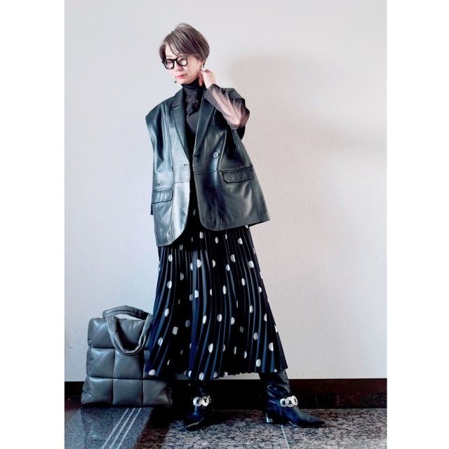 モード感たっぷりな「レザーのベスト・ジレ」は40代50代にぴったり。ハードルが高そうに思えますが、意外にもワンピースやスカートファッションと相性がよく使いやすいですよ。