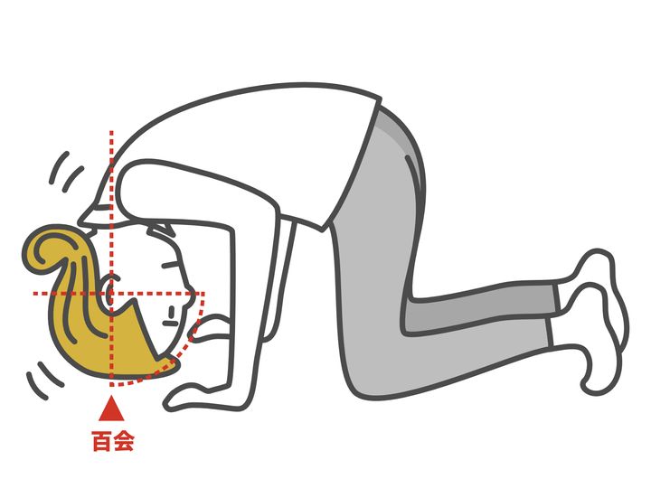 頭頂部の真ん中にあるツボを、指先でやさしく刺激。