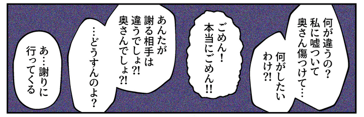 マナは「自分のせいで離婚なんてされたら困る」と思っているようだ。ヒナコに謝るべきだときつく叱られ、オレは何も言い返せなかった。そして、悪いのはヒナコでもマナでもなく、自分自身だったことをようやく理解したのだった……。